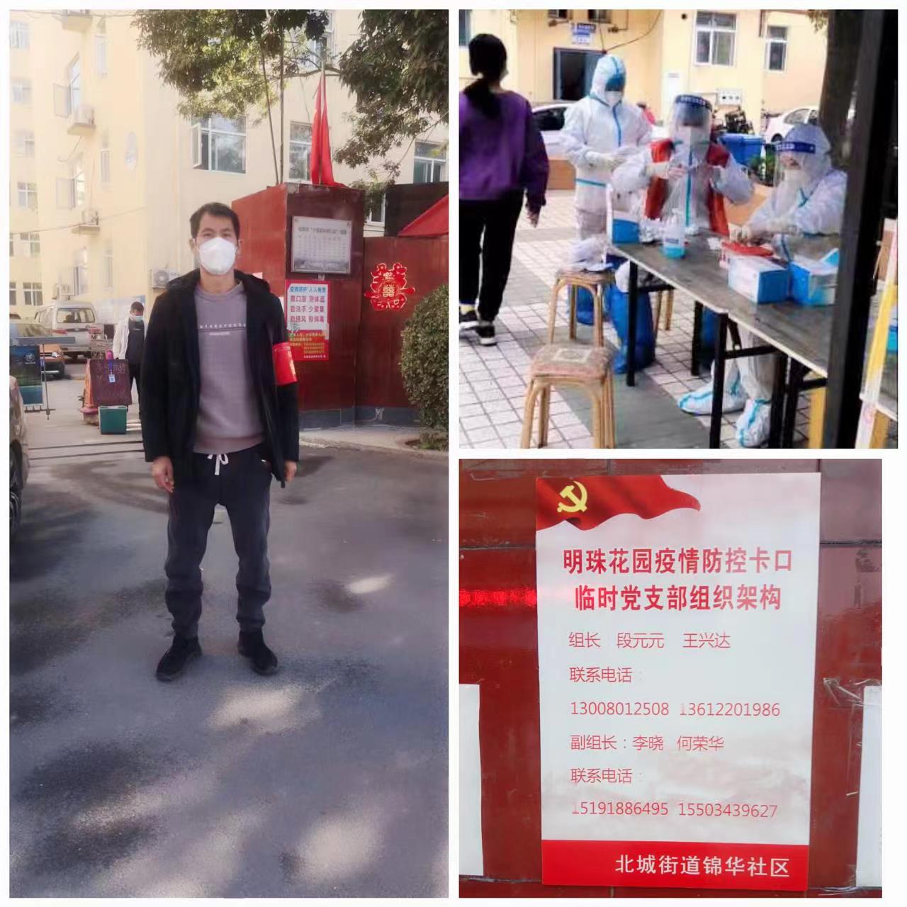 從10月4日到現(xiàn)在,整整10天時(shí)間,何榮華一直堅(jiān)守在卡扣值守崗位上,嚴(yán)格落實(shí)防疫“四件套”,為小區(qū)防疫筑牢“銅墻鐵壁”。在做好自己工作的同時(shí),積極幫助小區(qū)信息登記、維持秩序、測(cè)溫核碼、醫(yī)療保障、物資配送……“做什么都可以,只要是防疫需要。”樸實(shí)的語言,詮釋的是黨員們不變的初心。在他們的帶動(dòng)下,越來越多的志愿者加入到他們的隊(duì)伍當(dāng)中,10天來,完成了10次上萬余人的核酸檢測(cè),每天堅(jiān)持在小區(qū)早晚巡查8小時(shí)以上,與明月晚星相伴,看朝霞旭日初升,他們頂住壓力,勇往直前,全力筑牢疫情防控防線,讓黨旗在疫情防控一線高高飄揚(yáng)。