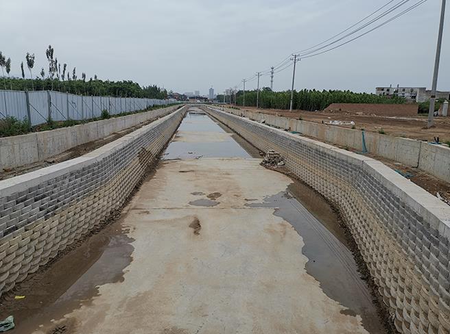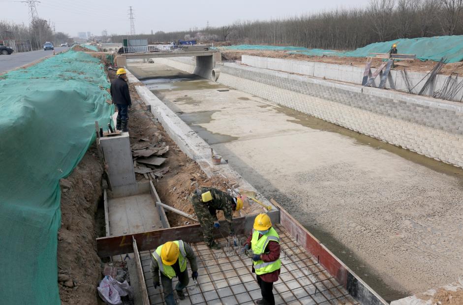 工程批復(fù)總投資4.8億元,批復(fù)工程主要建設(shè)內(nèi)容:渠道疏浚5 km;新建和改造兩岸堤防10 km;新建平板橋14座,人行拱橋3座;新建和改造截污管線4.02km;新建景觀鋼壩閘3座;渠道兩側(cè)綠化8萬m²;新建水循環(huán)泵站1座,埋設(shè)壓力管道4.8km。主要功能是泄洪、截污及景觀。2019年12月項目開工建設(shè),工期兩年。